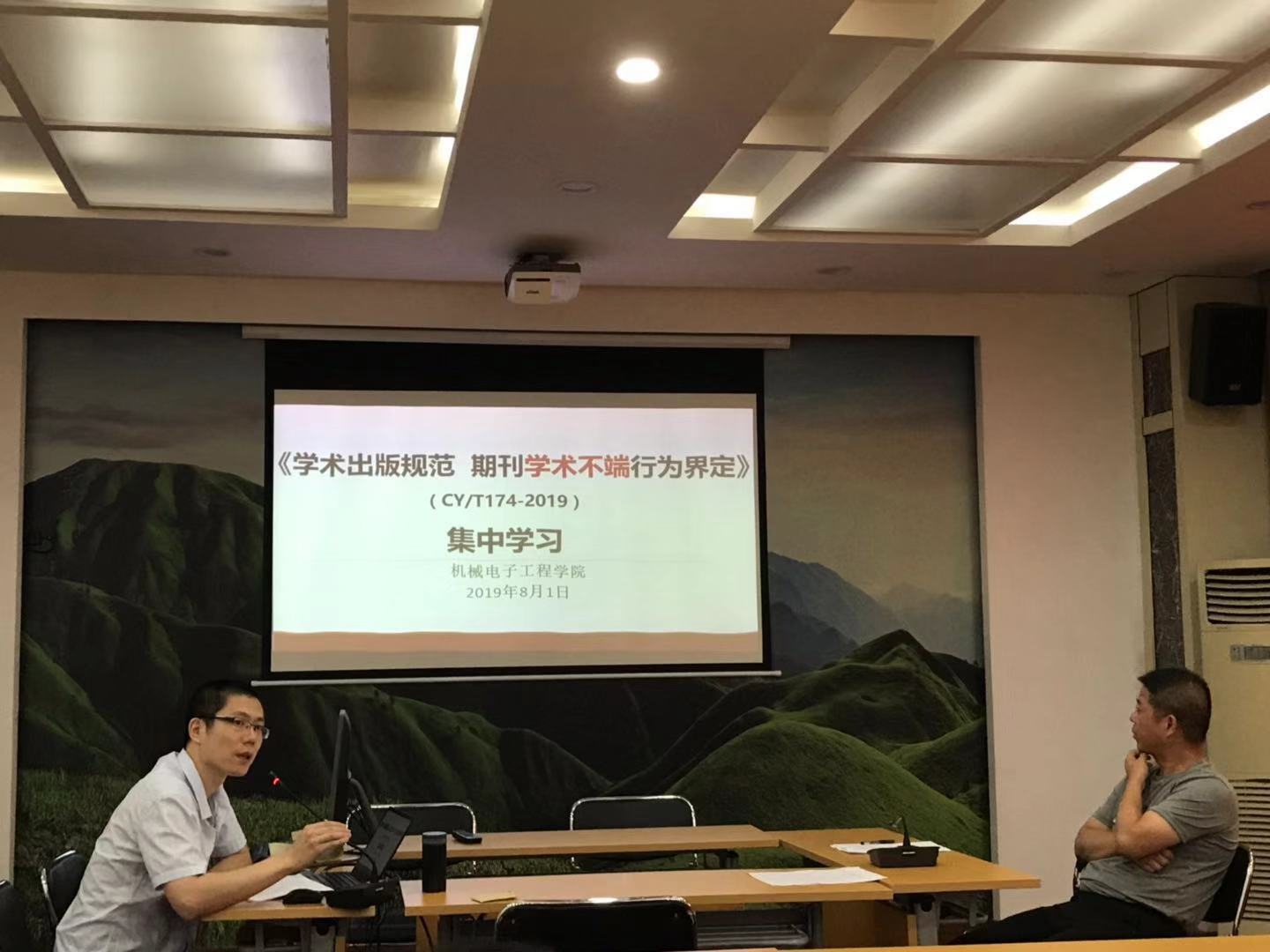 2019年8月1日上午,ok138cn太阳集团529组织全体教职工在2200会议室学习了国家新闻出版署发布的行业标准《学术出版规范 期刊学术不端行为界定(CY/T174-2019)》,会议由田春来副经理主持。