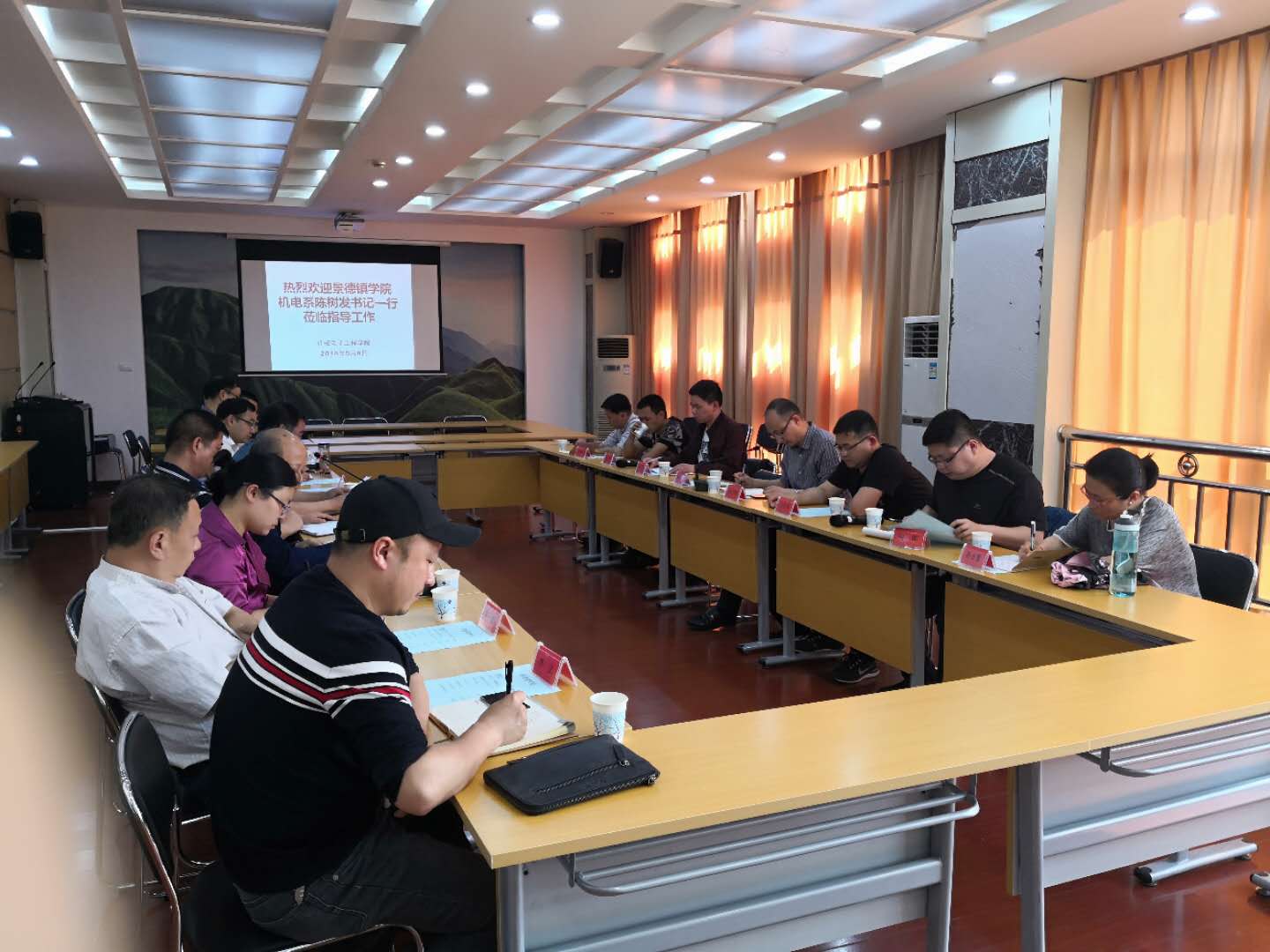 2018年5月8日下午,景德镇学院机械与电子工程系陈树发书记一行莅临太阳成集团官方网站机电学院进行参观交流。机电学院经理苏啸、书记王斌、副经理田华、副书记王立平携教研室主任、实训中心负责人热情接待,并于会议室开展交流座谈会。