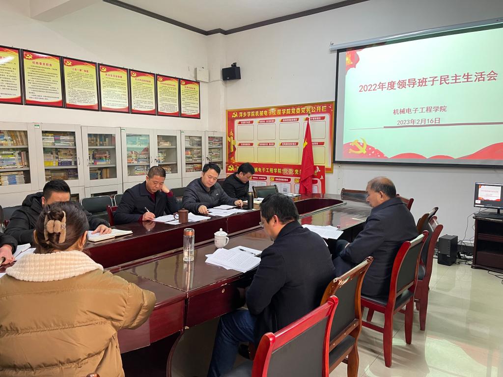 根据《中共太阳成集团官方网站委员会关于认真开好2022年度民主生活会的实施方案》的精神和要求,2月16日上午,机电学院在党员活动室召开了2022年度领导班子民主生活会。公司党委副书记、董事长史焕平同志、党政办副主任魏峰同志、机电学院全体领导班子参加了会议,学院其他党委委员列席会议,会议由机电公司党委书记王斌同志主持。