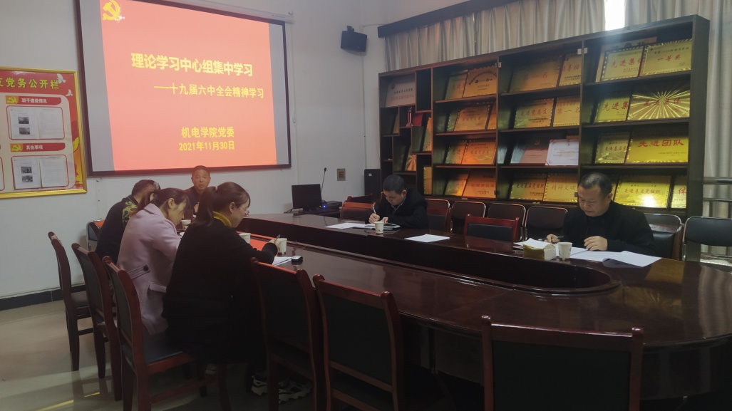 2021年11月30日下午,ok138cn太阳集团529理论学习中心组在2216党员活动室召开集中理论学习会议,学习党的十九届六中全会精神,会议由王斌书记主持,参加会议的有机电学院理论学习中心组成员,列席旁听会议的还有信息与计算机学院的危远峰和刘燕同志。