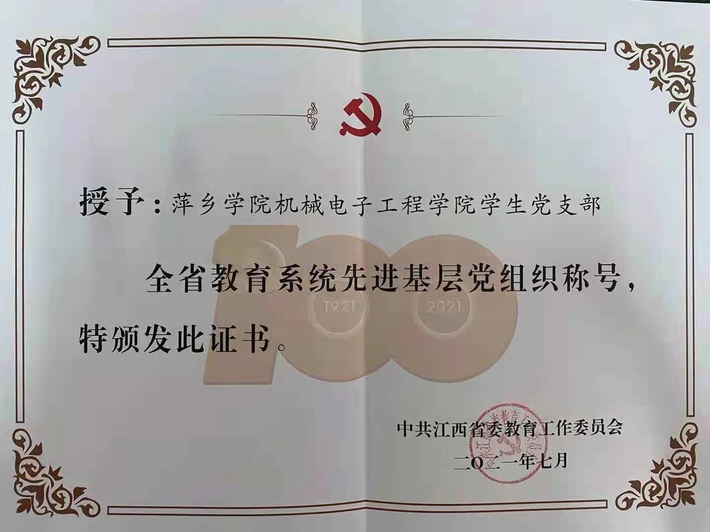 热烈祝贺机电学院员工党支部被授予江西省教育系统先进基层党组织称号