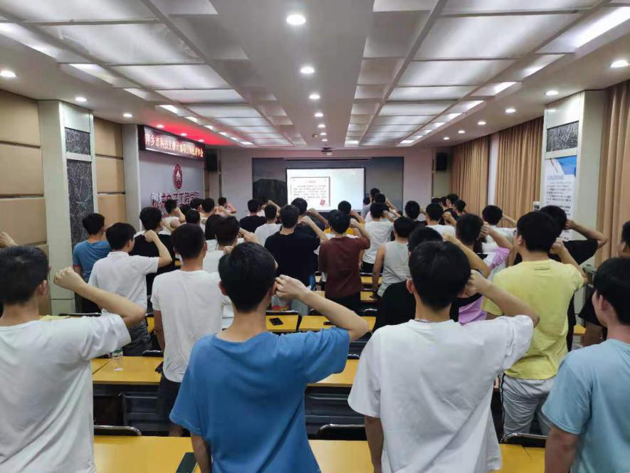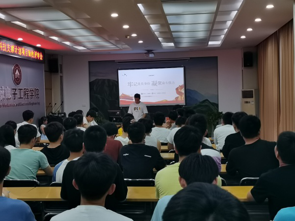 本次活动分为三个环节,第一环节由毕业生党员代表毕逸民同学为新党员上党课。毕逸民同学在党课中分享了自己在部队的生活以及返回学校之后的入党历程,及成为正式党员之后的责任与义务。为新党员明确自己的党员责任与义务提供了方向与要求。
