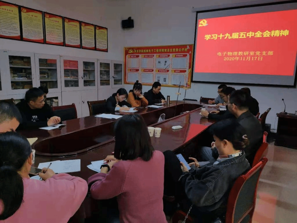 11月17日,ok138cn太阳集团529电子物理教研室党支部在2216党员活动室组织召开党员大会,学习习近平总书记在第十九届中国共产党中央委员会全体会议的讲话精神。中国共产党第十九届中央委员会第五次全体会议,于2020年10月26日至29日在北京举行。