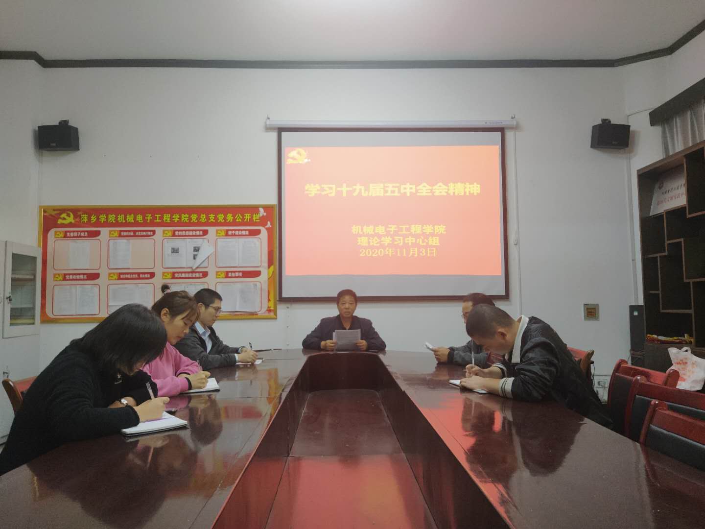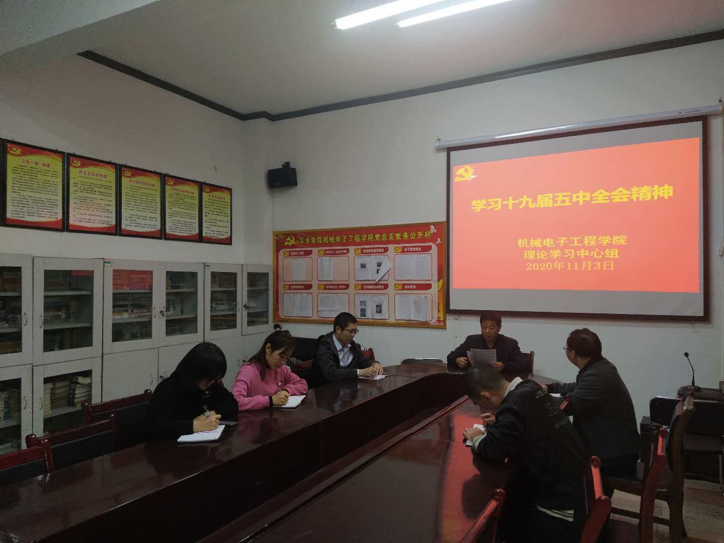 2020年11月3日下午,公司党总支在党员活动室开展理论中心组学习,深入学习十九届五中全会精神。学习会由学院党总支书记王斌主持。