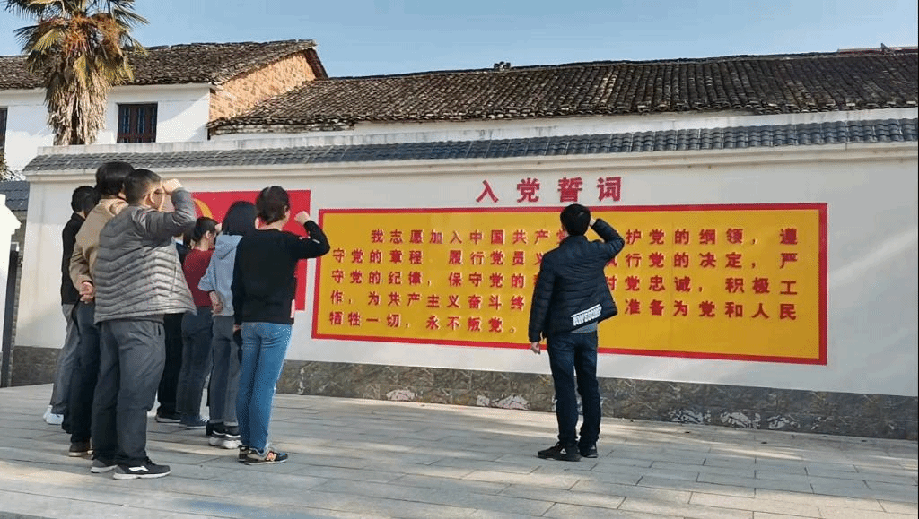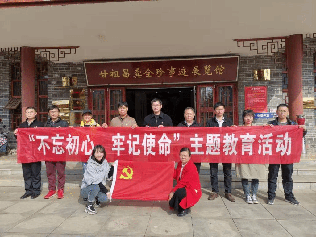 在甘祖昌故居前,全体支部党员同志在张小龙同志的带领下,重温了入党誓词。面对鲜红的党旗,高举右拳,字字铿锵,重温入党誓词,彰显了全体党员同志“不忘初心、牢记使命”的坚定信念。