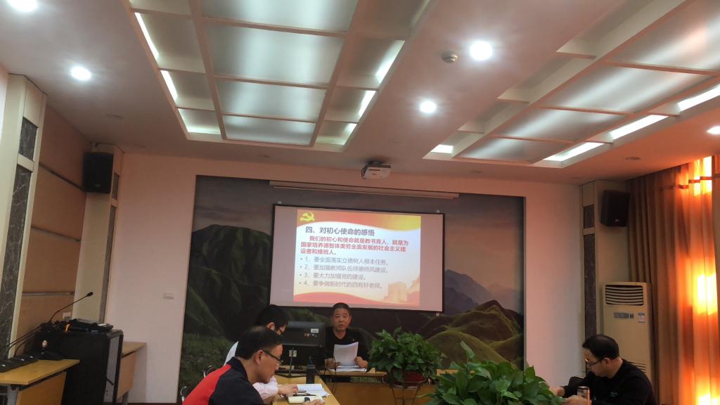 王斌书记结合学习教育,阐述了学习习近平总书记关于“不忘初心、牢记使命”重要论述的体会收获。要深入学习,经常思考,坚持实干,以习近平新时代中国特色社会主义思想武装头脑、指导实践,推动工作落到实处。结合调查研究,阐述了存在的客观和主观问题,并且提出了改进工作的思路和措施,包括加强理论学习,增强四个意识;敢作为、敢担当等。通过学习理论并结合工作实际,王斌书记讲述了作为教育工作者悟初心、担使命的感悟。要全面落实立德树人根本任务,不忘初心,牢记使命,争做新时代的“四有”好老师。