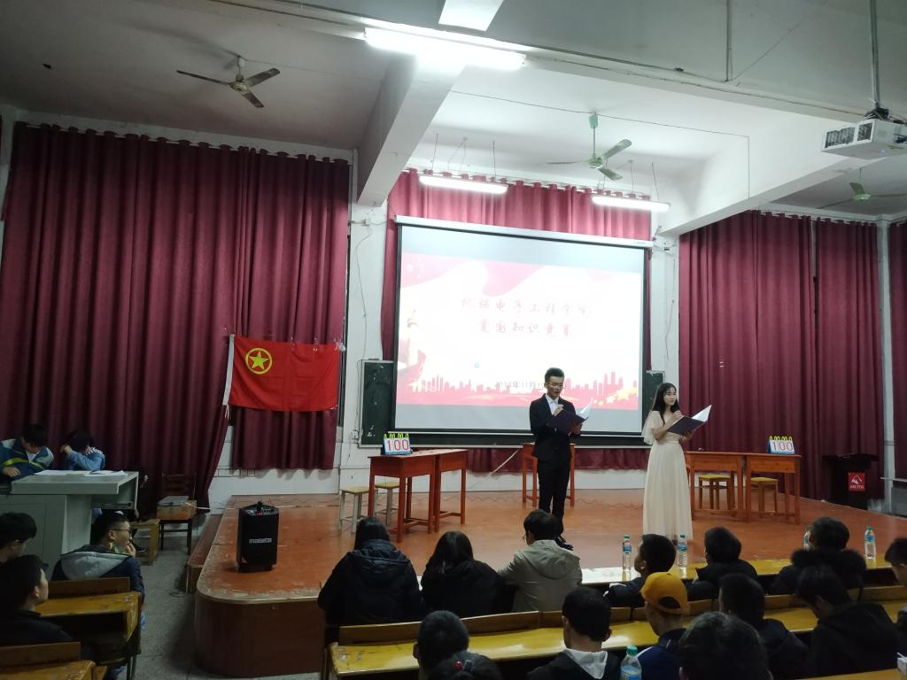 为激励当代青年的爱国主义热忱,弘扬爱国主义精神,开展爱国主义教育,2018年11月19日晚7点整,机电学院于跬步楼1115教室举办了“不忘初心、牢记使命”爱国知识竞赛的初赛。本次比赛由机电学院员工会组织部主办,18级共有7支队伍代表班级参赛。