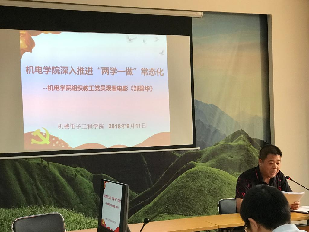 为深入贯彻习近平总书记对邹碧华同志先进事迹的重要批示精神,推进“两学一做”常态化,更好地发挥先进典型的示范引领作用,9月11日下午,机电学院组织40多位教职工党员集中观看电影《邹碧华》,学习时代楷模人物的先进事迹。