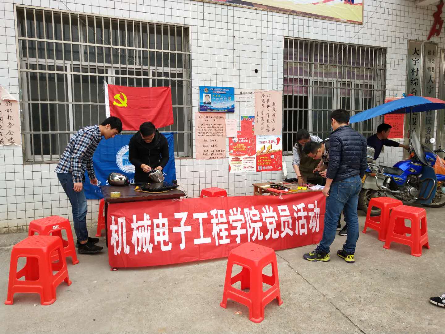 2018年3月30日,一支由教工、员工党员及入党积极分子组成的家电义务维修小分队,在公司党总支的带领下来到了上栗县福田镇大宇村,开展了下乡志愿服务主题党日活动。此次活动旨在发扬机电学院 “团结务实,学以致用”的宗旨,利用专业优势,开展义务维修活动。