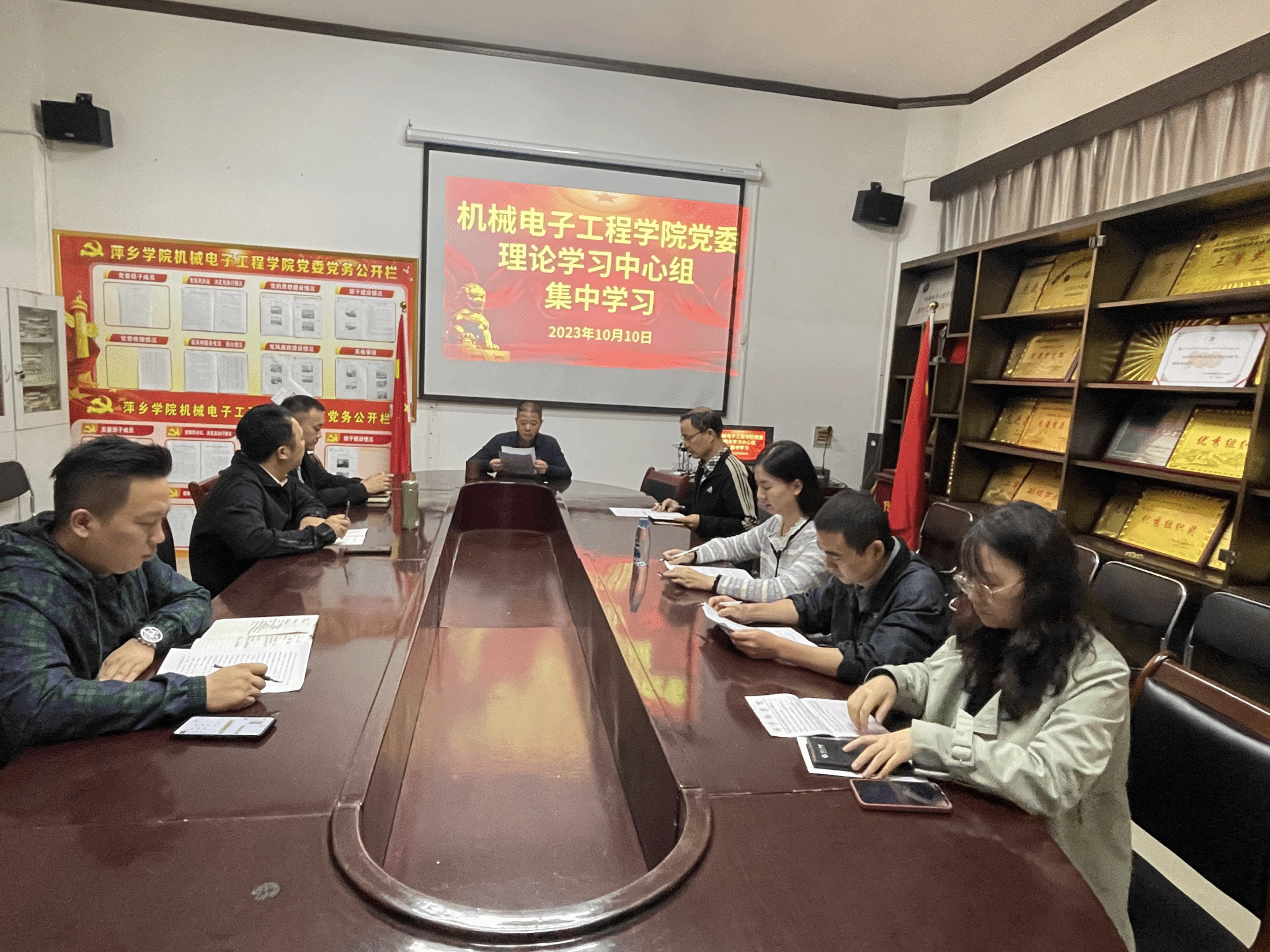 10月10日下午,机械电子工程公司在鼎新楼2216党员活动室召开党委理论学习中心组集体学习会,学习会由公司党委书记王斌主持,理论学习中心组全体成员出席会议,工程与管理学院朱婧老师列席会议。