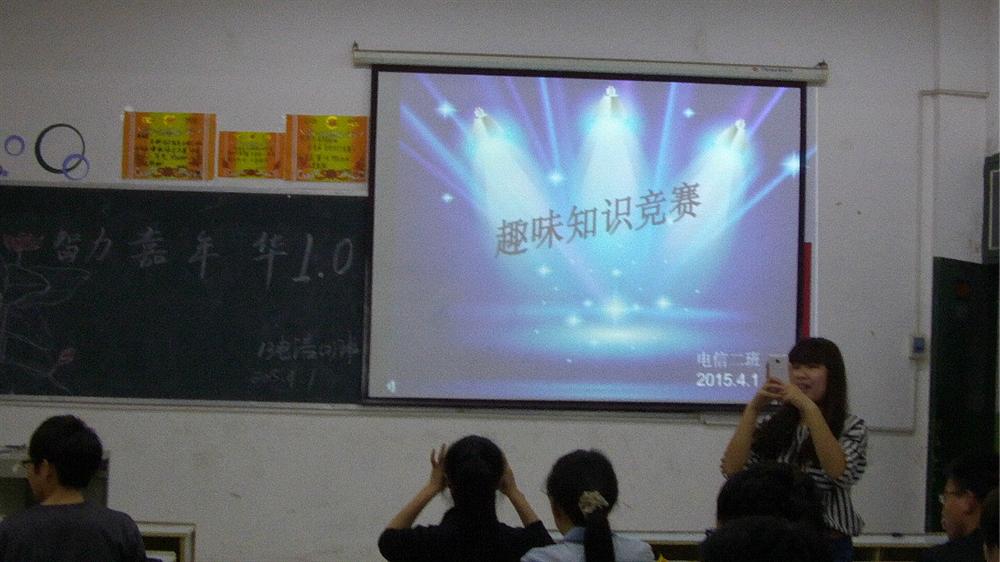 4月1号晚7点,机电系13电子信息(2)班在英华楼3516举办了“趣味知识”竞赛,活动取得圆满成功。