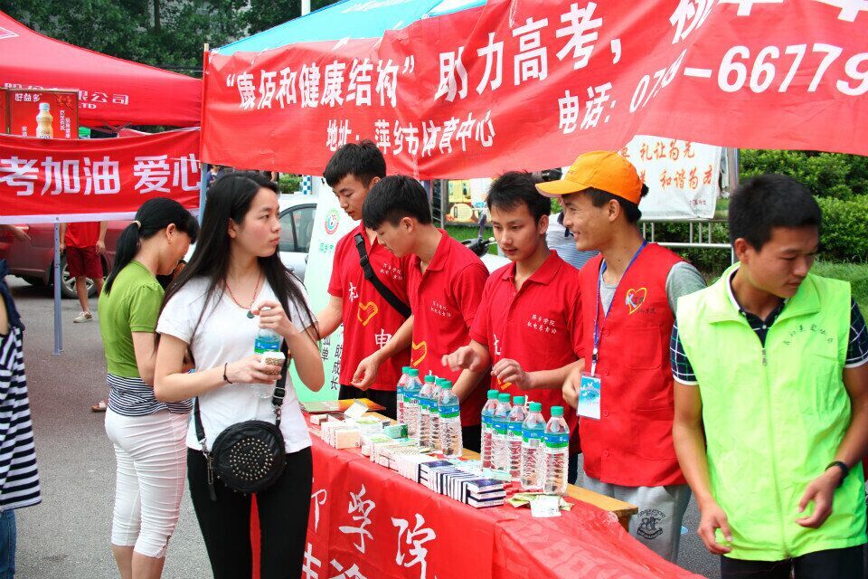 6月7日、8日,机电系青协的志愿者们联合启初志愿者协会的志愿者们在芦溪县芦溪中学开展了高考志愿服务活动,为参加高考的考生及家长提供现场服务和缓解压力的心理辅导。