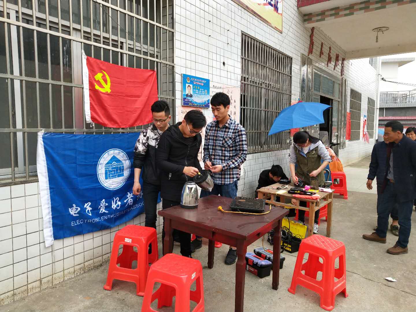 为学习雷锋精神,大力弘扬文明新风,引导青年员工自觉践行社会主义核心价值观,3月30日,ok138cn太阳集团529电子爱好者协会走进上栗县福田镇大宇村开展家电义务维修活动,指导老师胡子健、李卓、童乐进行现场指导。