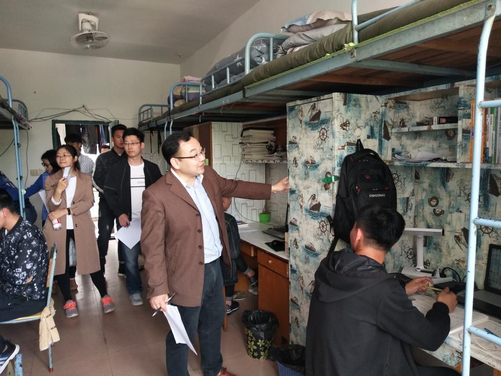 4月16日中午,机电学院副书记王立平、辅导员张陆以及各班班主任带领员工会人员走进员工宿舍进行了检查评比。员工们的精心设计、精彩创意、精心布置让评委们连连称赞。寝室中各式各样美丽的装扮,为寝室点亮了一抹亮光。爬山虎样式的壁纸,绿色妆点了寝室的原木色彩;写字台前的励志名言,彰显了员工们自我的抱负。老师还与员工们打趣交流,询问员工给寝室是怎么装扮的,有没有遇到什么困难,也使得检查多了一份乐趣。