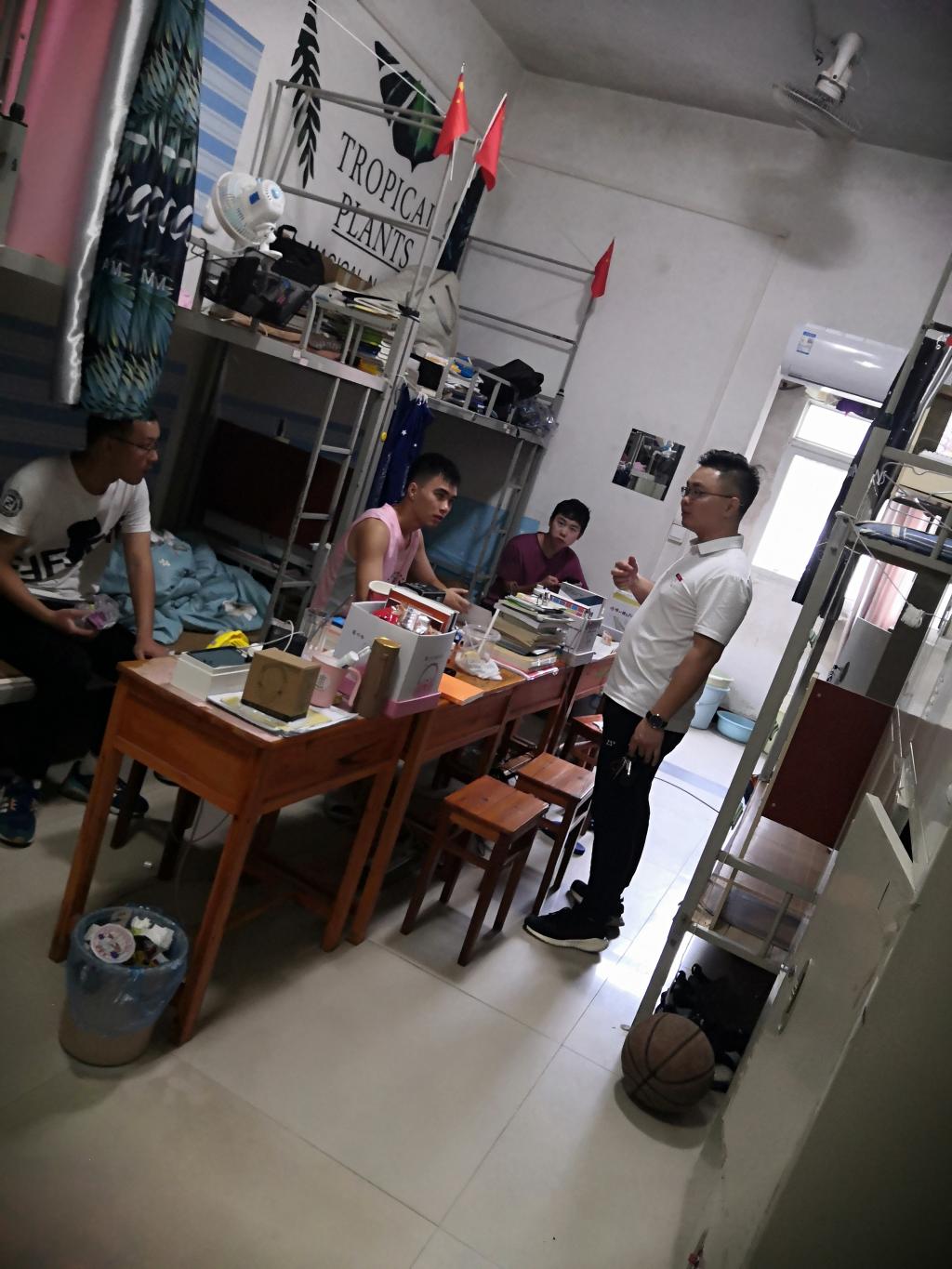 辅导员们重点摸排员工宿舍的大功率电器、天花板漏水等安全隐患,倾听员工们的诉求,关心员工宿舍漏水问题,并积极引导员工网上报修。