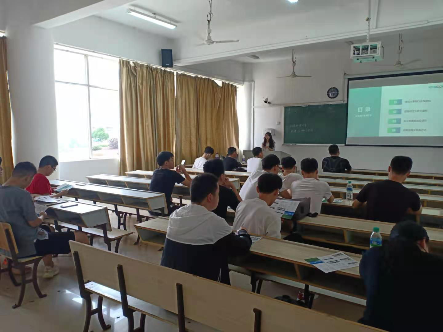 招聘会上,同学们首先对用人单位的到来表示热烈的欢迎。然后,江西绿萌科技控股有限公司人事处负责人向同学们介绍了他们公司的发展史,详细介绍了公司的相关产业,并说明了公司的薪资待遇。随后,17机设3班同学也结合之前在该公司的实习经验介绍了公司的情况,并一一解答了同学们的一些问题。最后,招聘负责人进行了笔试和面试,部分员工初步达成了就业意向。
