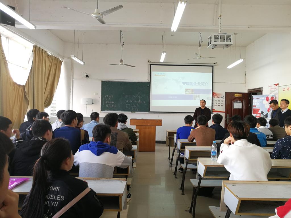 2018年11月26日14时,深圳市安瑞创电子科技有限公司于2216教室召开机电学院专场校园招聘会,19届毕业生踊跃参与。
