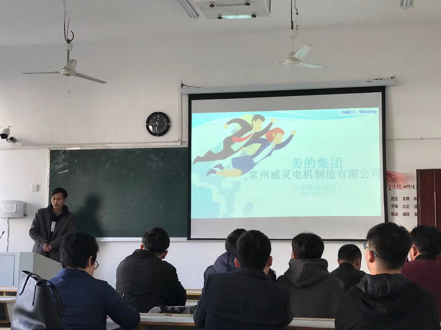 2019年12月7日上午,机电学院于2216教室召开美的集团常州威灵电机制造有限公司专场招聘会,2020届机械设计制造及其自动化、电子信息工程专业毕业生参加了招聘会。