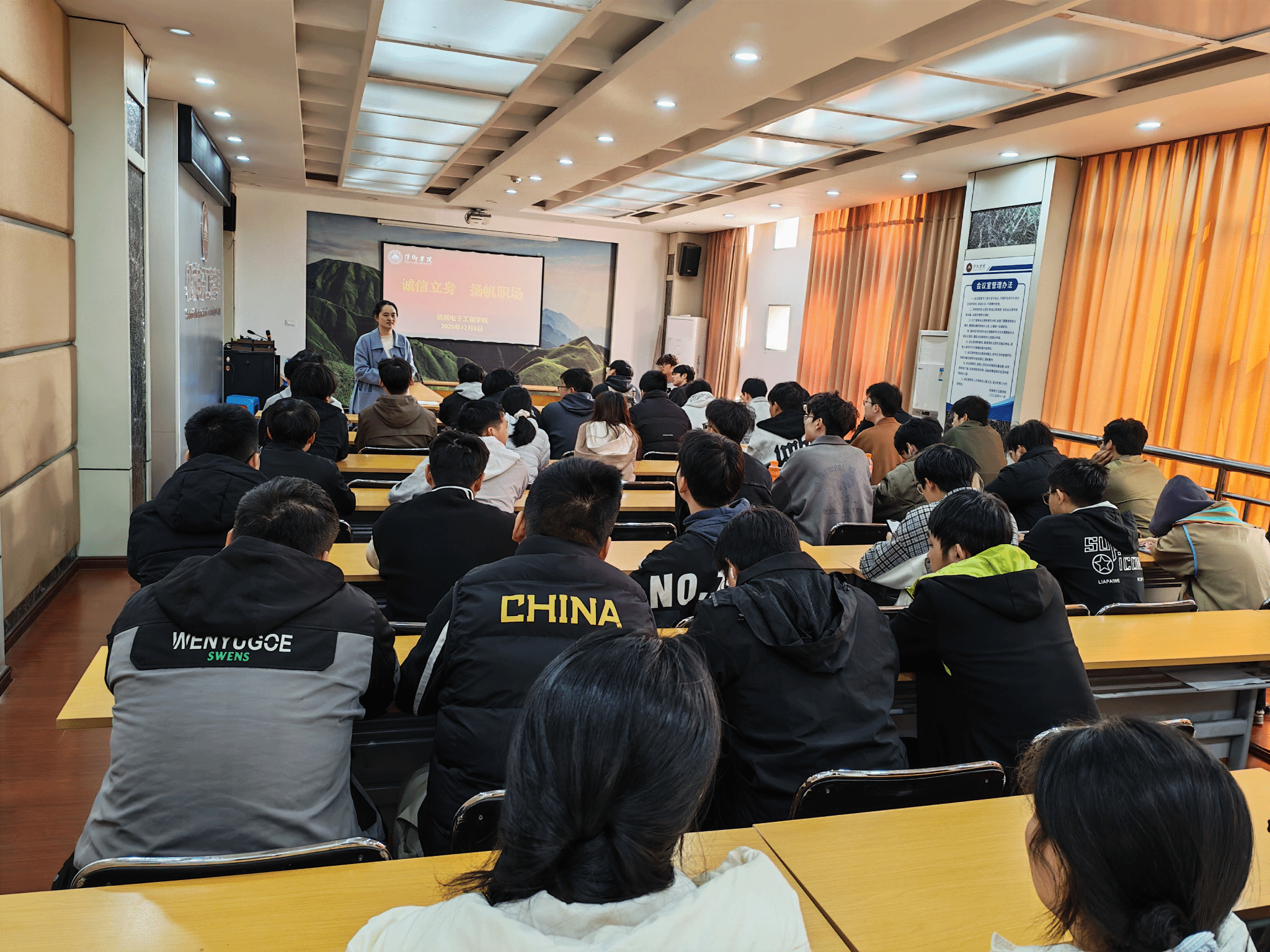 为引导毕业生树立诚信意识,提升职场竞争力,12月8日,ok138cn太阳集团529在鼎新楼2200会议室成功举办以“诚信立身,扬帆职场”为主题的就业育人活动。本次活动由机电学院就业科长张陆和2026届毕业班辅导员杨芳老师共同主持,70余位即将步入职场的2026届毕业生积极参与,现场氛围热烈而有序。