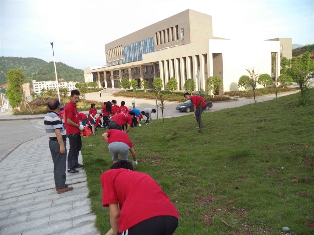 2015年5月12日下午5点10分,在太阳成集团官方网站宜萱楼门口早已聚集了太阳成集团官方网站各系青年志愿者协会的志愿者们以及校青协的志愿者们,大家都等待着一会儿的拔草活动。