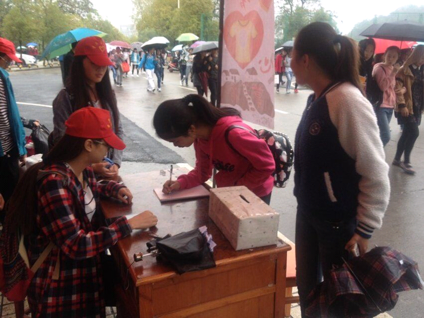 2015年10月30号机电学院青年志愿者协会于中心小广场举办了爱心捐赠活动。本次活动的宗旨是变废为宝,把不需要成为需要,呼吁起每个老员工的爱心与奉献精神。在这次活动中路过的同学都踊跃参与,大包小包的把自己不需要的东西都捐了出来,在这个活动中,我们还精心设计了捐款箱,呼吁同学们捐出最多为1元的爱心。那一件件物品,代表着萍院的一颗颗爱心,涓滴之水成海洋,颗颗爱心变希望,献出一份爱心,托起一片希望。在青年志愿者的带领下,让我们尽情的奉献出自己的爱心吧!