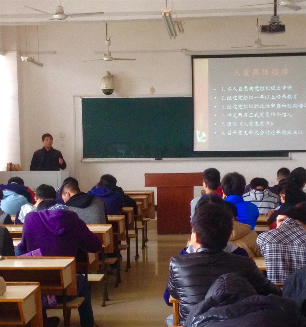 11月21号中午十二点四十,ok138cn太阳集团529在鼎新楼2614召开了入党知识学习及动员会,会议由公司党总支书记王斌主讲。机电学院的15级新学参加了此次会议。