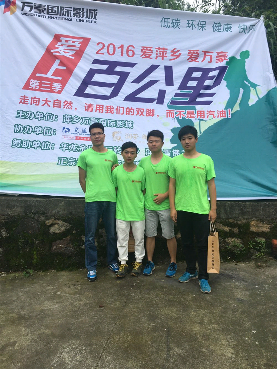 5月28日上午,14应用电子班叶子国、罗斌、范宸华、林凯等参加了“爱萍乡、爱万豪”百公里大赛,主题是低碳、环保、健康、快乐。上午的天气并不是那么理想,还没到7点温度就上升到了18度,空气湿度就飙升到了80%,刚下雨的跑道还有些湿滑,赛场上出现了14应用电子班叶子国等同学的身影,他们一路从万豪国际影城徒步越行23公里最后同时到达婆婆岩半山腰(终点站)。