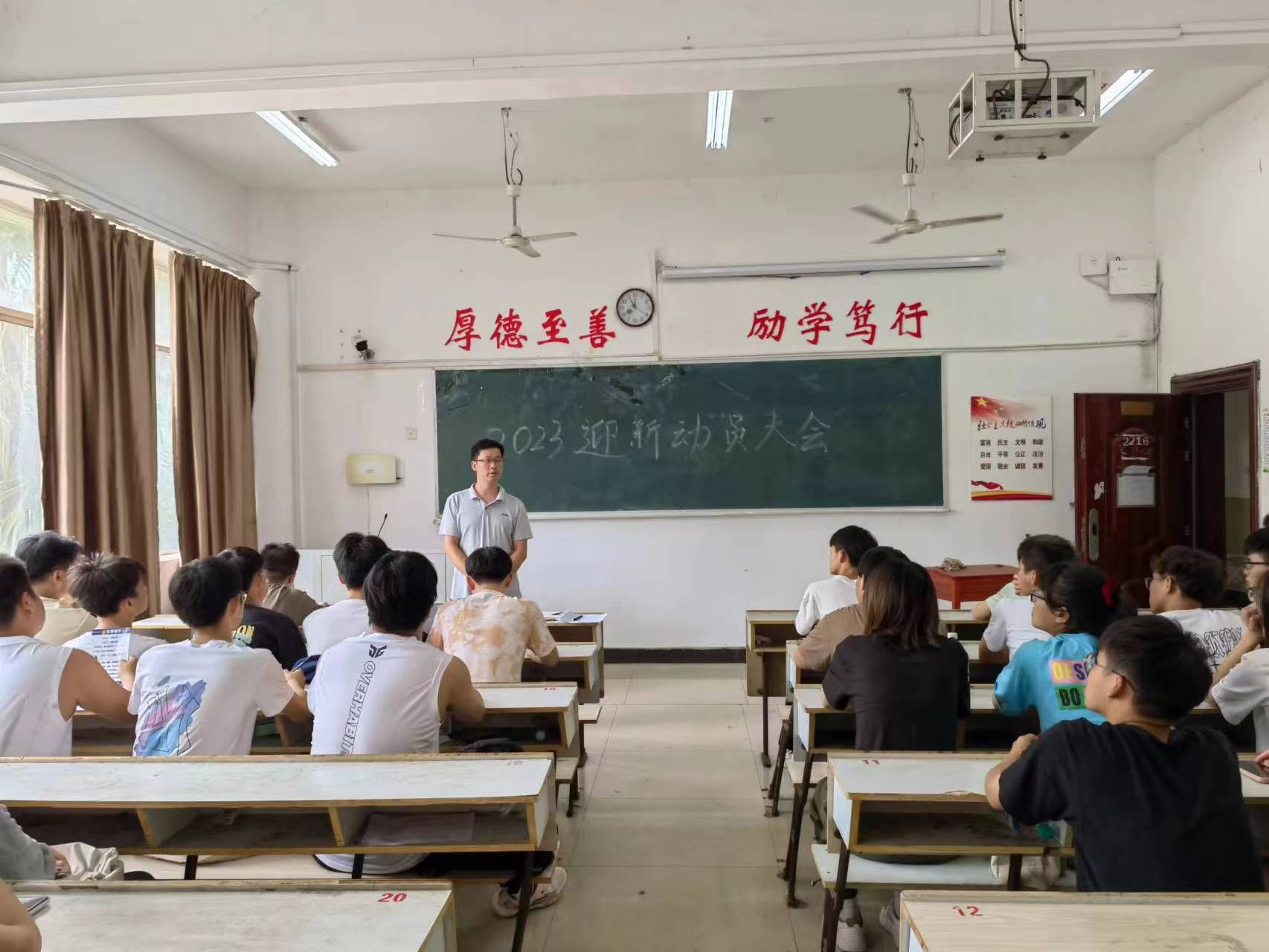 最后,童乐副书记对学院迎新工作进行了再动员再部署,他强调,迎新工作是新生入学教育的第一课,我们必须优化服务,发展创新性迎新方式,让新生到校即能感受到的“温度”。他要求全体辅导员提高站位、压实责任,要高度重视迎新工作,各司其职、明确分工,以积极饱满的精神面貌、主动热情为新生做好服务,确保迎新工作顺利圆满完成。