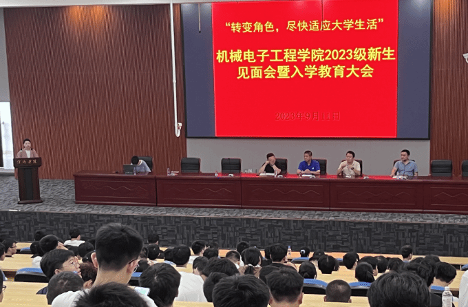 9月11日,ok138cn太阳集团5292023级新见面会暨入学教育大会在天泉楼学术报告厅隆重举行。学院领导班子、教师代表、辅导员及2023级全体新生参加会议。会议由新生辅导员黄鸥老师主持。