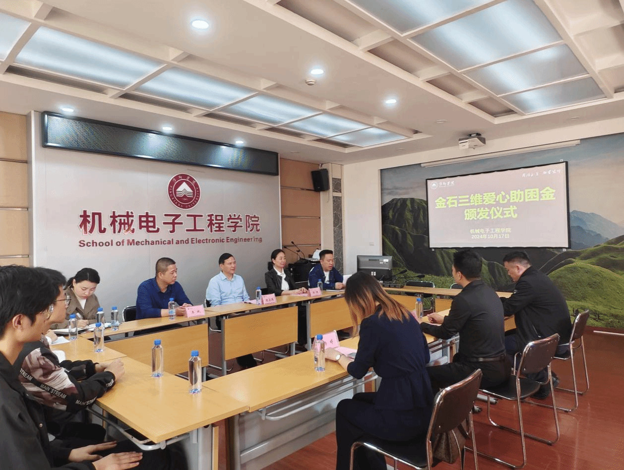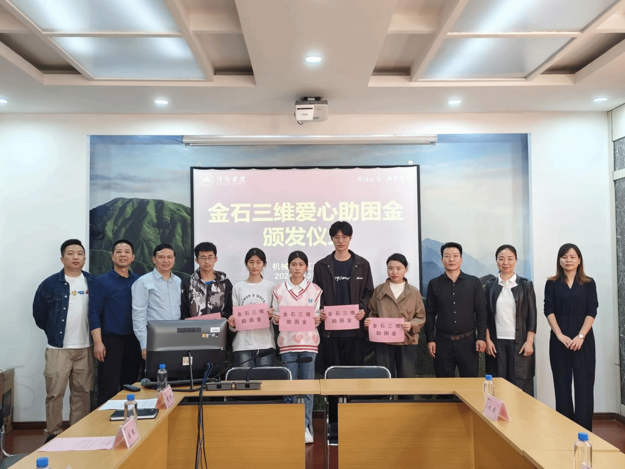 11月12日下午,江西金石三维智能制造科技有限公司“金石励学助困金”颁发仪式在鼎新楼2200会议室举行。出席本次仪式的嘉宾有:江西金石三维智能制造科技有限公司总经理王小博先生、行政总经理杨婷女士、公司党委委员副董事长陈永国、学工处处长陈敢、ok138cn太阳集团529班子成员以及这次受助的师生代表。仪式由公司党委副书记童乐主持。