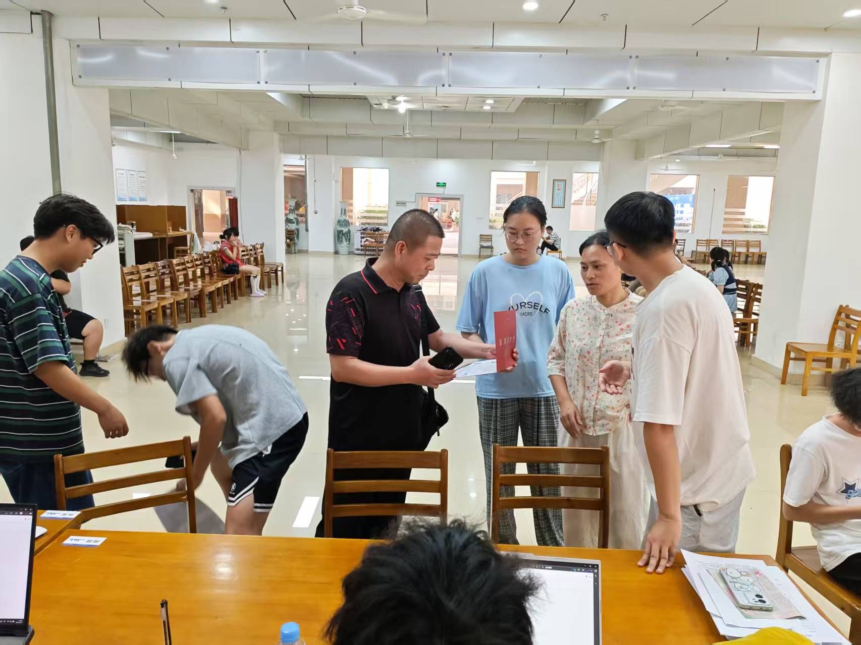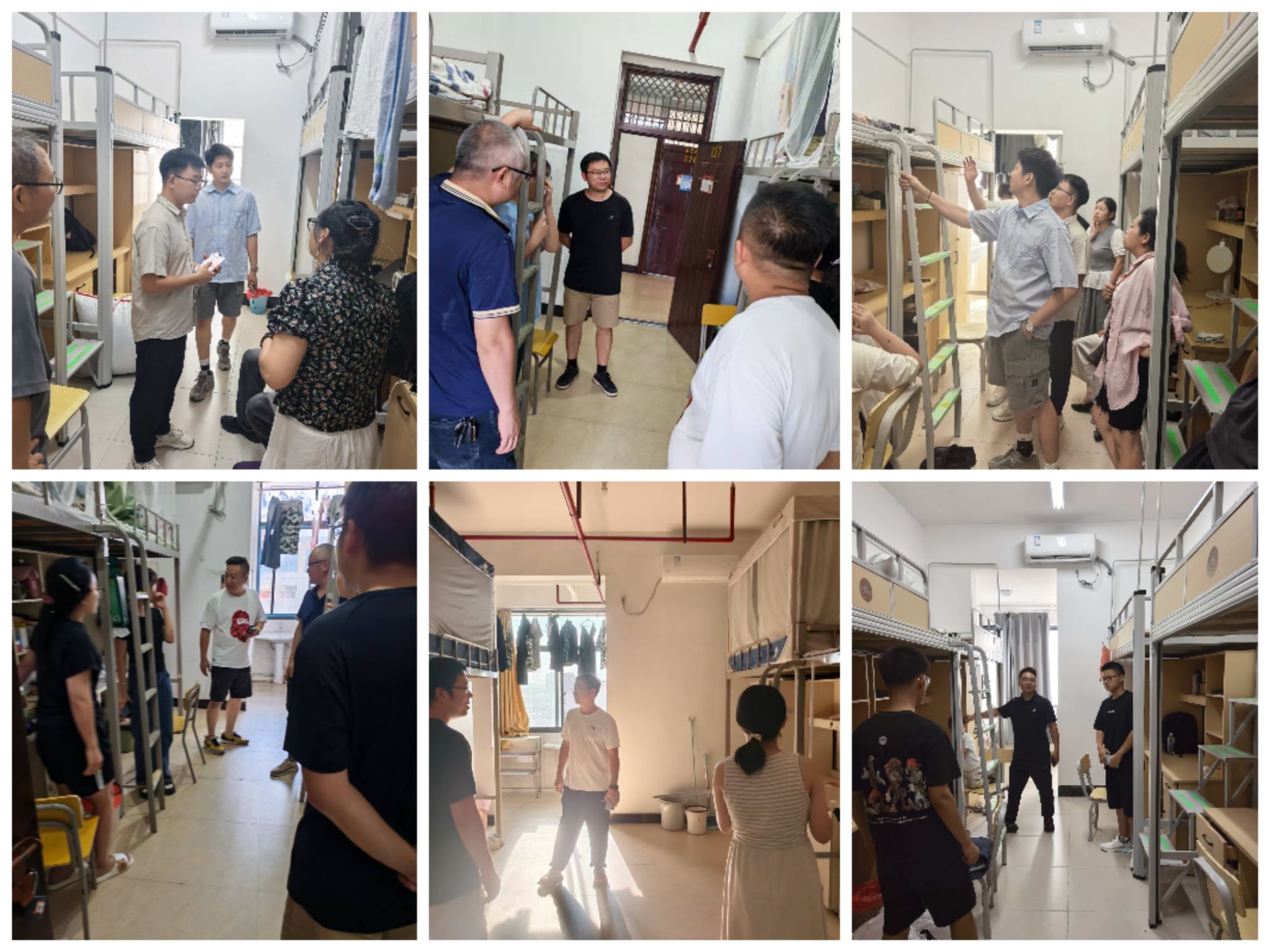 报到场外,学院班子和辅导员班主任老师分别带队走进员工宿舍,查看新生宿舍安置情况,鼓励大家尽快适应老员工活,好好学习,再创佳绩。