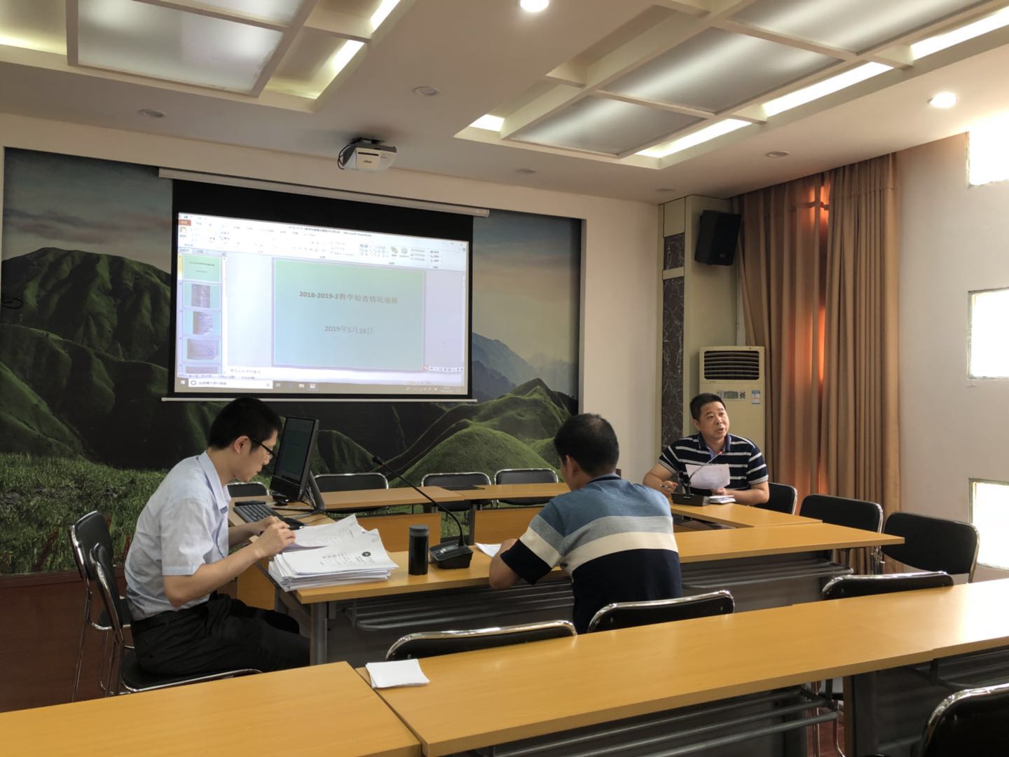教学科研科长张红钢具体布置了期末考试、课程设计、认知实习和毕业设计相关事宜,细致地针对2018-2019-1期末试卷材料、毕业设计及过程指导的检查工作中出现的问题进行解释说明等反馈工作,以便学院及各位老师更有效地完成各项工作。