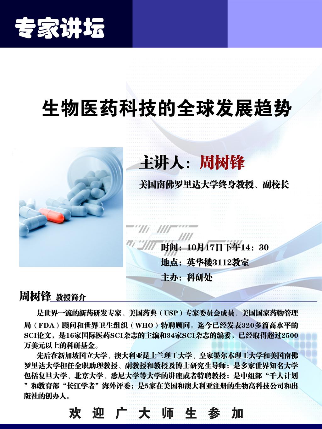 专家讲坛(10月17日星期四)