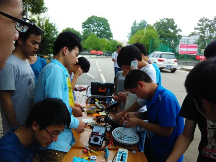 炎炎的夏日,烈日炙烤着大地没有一丝凉意。32度的高温阻挡不了我们机电系电子爱好者协会成员们的热情! 2014年5月27日,电子爱好者协会在中心小广场组织了一次义务维修活动。