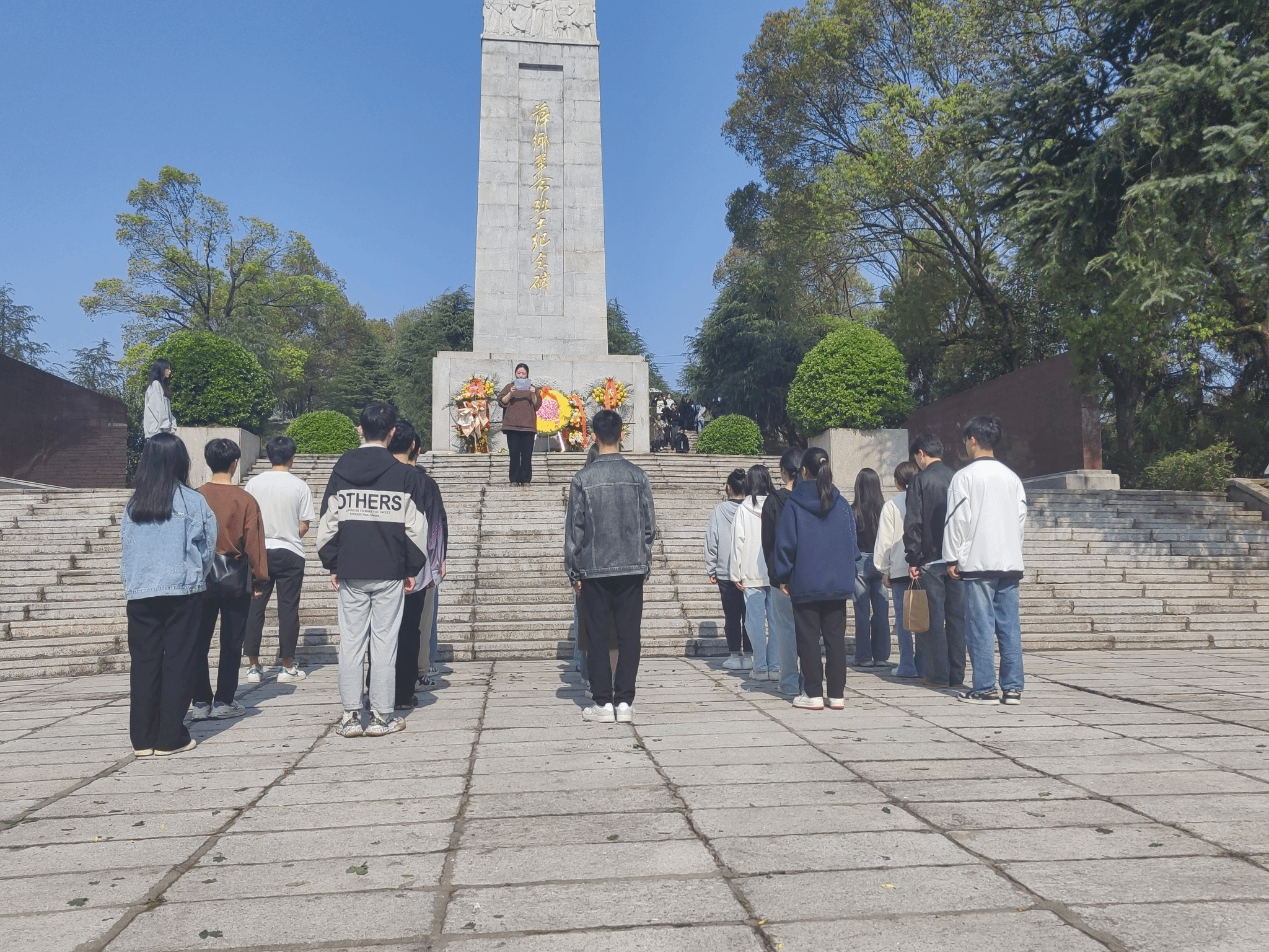 同学们一大早便来到了萍乡革命烈士陵园,他们手持鲜花,神情肃穆,缓缓步入陵园,向烈士纪念碑敬献花篮,并鞠躬默哀,表达对革命先烈的无限敬仰和怀念之情。
