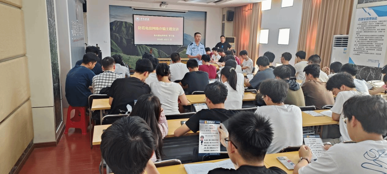 2024年6月13日,为有效遏制电信新型诈骗违法犯罪案件高发势头,切实提升广大师生的防范意识, ok138cn太阳集团529在各班级选派了44名员工骨干成员组建防诈骗宣讲团,并邀请安源公安分局东大派出所所长李丁胜在鼎新楼2200进行防诈骗专题培训班。