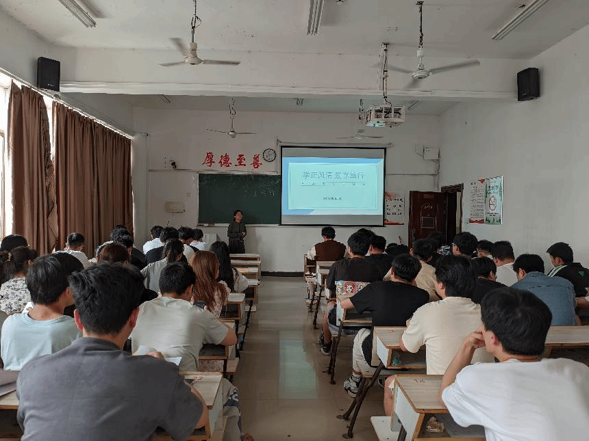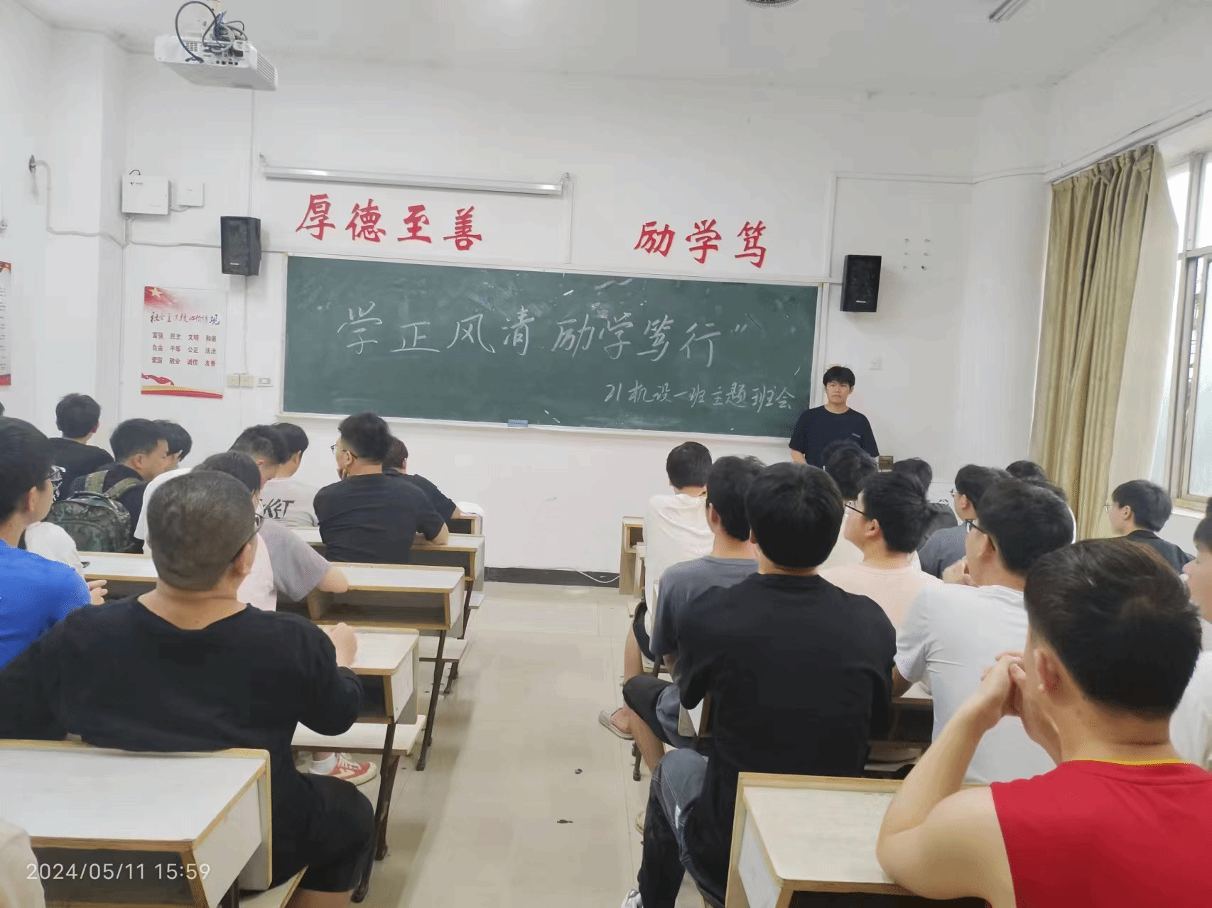 班会上,辅导员和班委带领同学们了解了2024年“学正风清、励学笃行”学风建设主题活动实施细则,通过广泛、深入、细致地宣传教育,使师生充分认识和理解加强学风建设的目的、意义和要求,积极参与学风建设活动。各班辅导员通过PPT展示,从班级课堂出勤率、考试及格率、四六级通过率、学习型组织创建、校级以上荣誉获取、寒暑期社会实践、班级文化建设、学科专业竞赛等方面进行了分析和介绍,不仅展示了学风建设的显著成效,还深入剖析了存在的问题和不足,为师生们提供了清晰的班级学风建设现状概览。