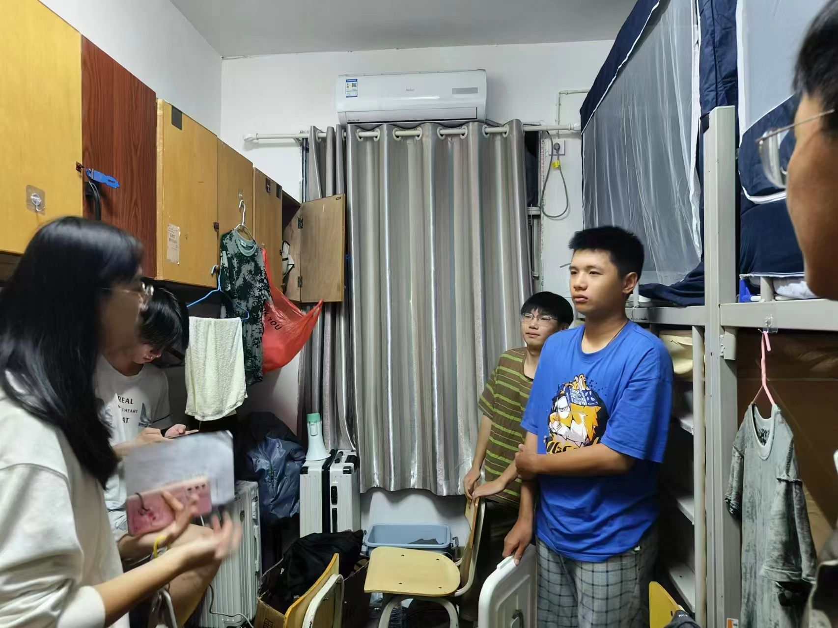 老师们到达员工宿舍后,首先仔细询问新生同学到校后的情况和感受,是否能住得惯、吃得惯,能否适应新环境,了解他们的需求。并告诉同学们在生活中要有安全意识,注意自身安全和财产安全,正确使用电器,保管好随身财物,搞好安全防范,提高自立能力。