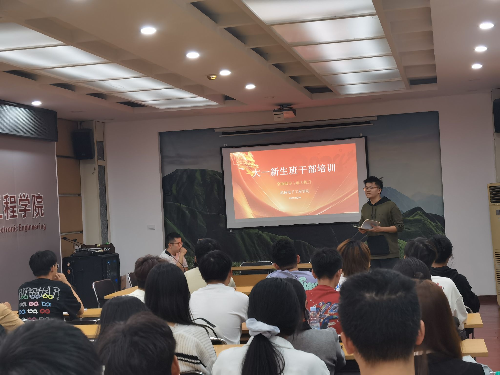 为进一步提升班干部的综合素质和管理能力,加强班级建设,ok138cn太阳集团529于10月10日晚在2200会议室开展了2024级新生班干培训会。活动由新生辅导员李哲、谌佳文主持。