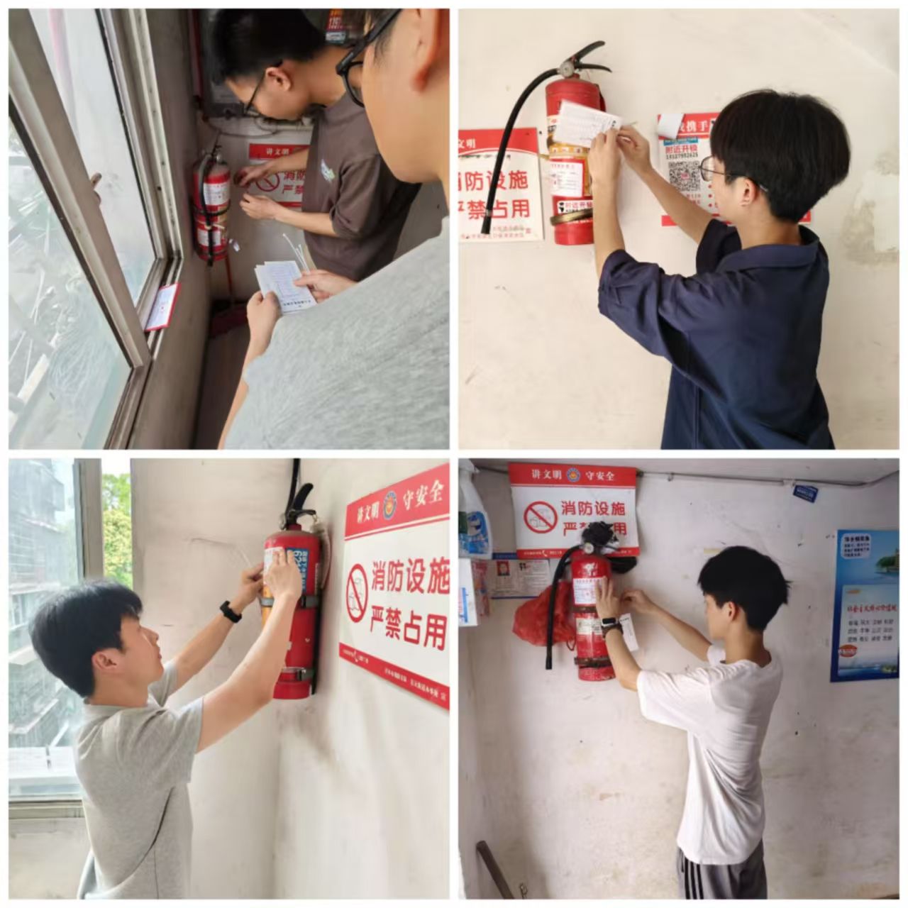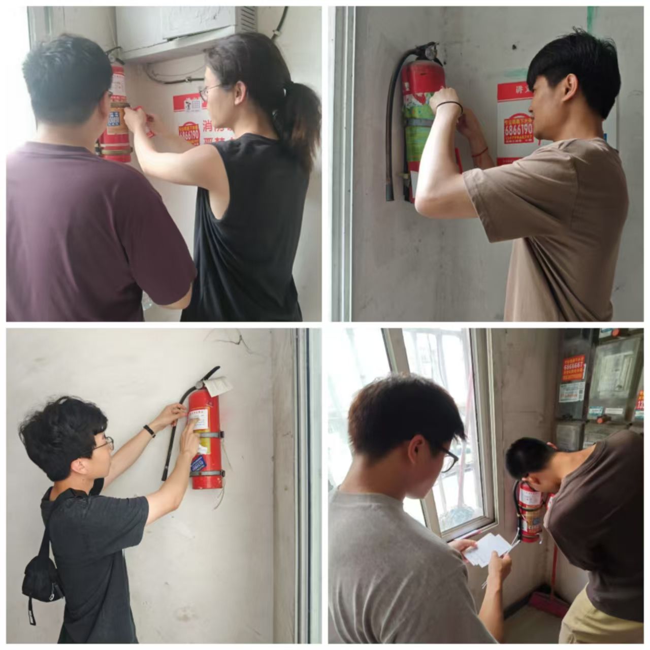 随后,师生党员来到小区居民楼积极向居民们宣传安全知识,倡导大家从日常小事做起,共同提升安全防范意识。同时针对居民楼消防安全隐患、灭火器更新状况、用电安全状况、违禁物品存放情况等方面,展开了全面而细致的检查工作。