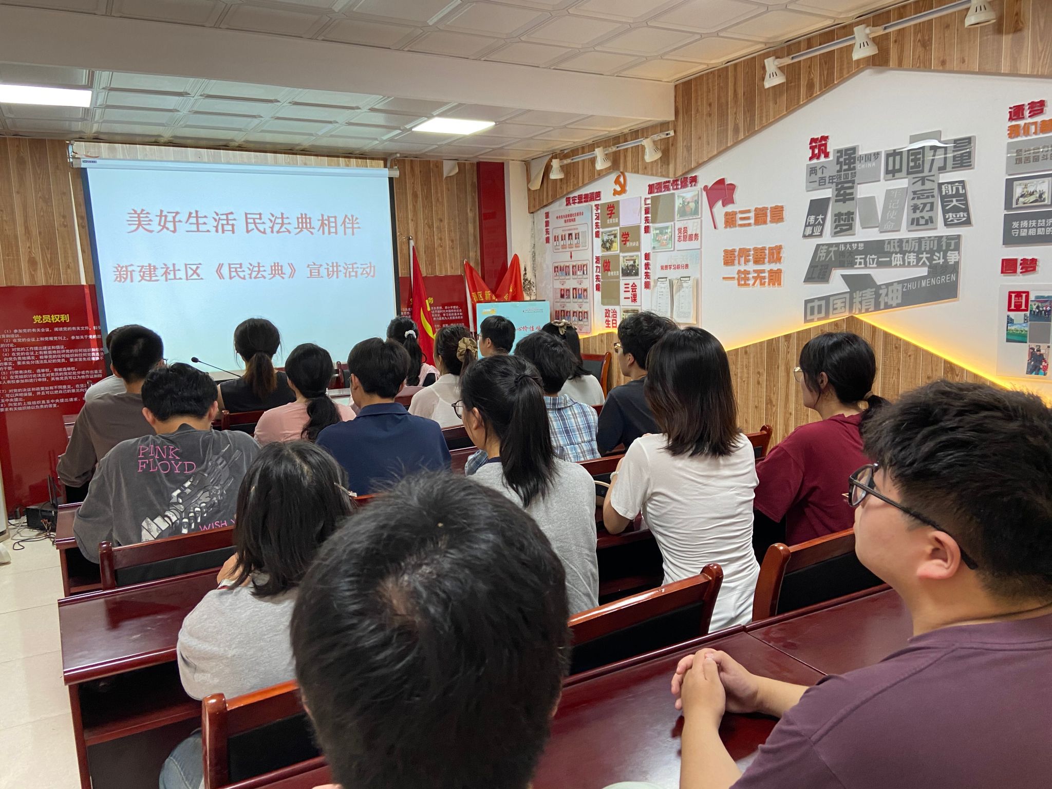 在社区工作人员的指引下,师生党员在新建社区聆听了社区“美好生活·民法典相伴”主题普法活动,社区工作人员的专题讲座聚焦青年成长需求,通过典型案例解析,从民事活动和处理民事纠纷、解除劳动合同经济补偿、违法解除劳动合同赔偿金、劳动者维权的误区、劳动者的主要权利、知识产权法的法理结构等方面做了精彩纷呈、深入浅出的讲解。讲座中涉及的法律知识对在校员工和即将走上工作岗位的毕业生都有重要的指导价值。