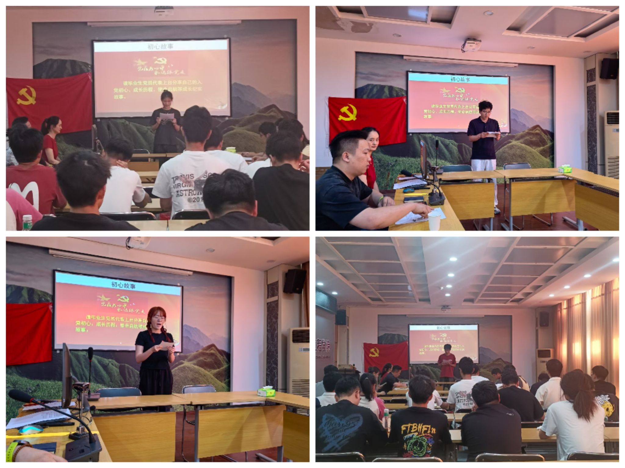 “初心故事”环节中,四名优秀毕业生党员代表结合成长经历,讲述了从入党积极分子到正式党员的蜕变历程。黄崇英同志动情回忆了自己在部队参与抗击疫情的经历:“在困难与挑战面前,我深刻体会到‘为人民服务’不是口号,而是脚踏实地的行动。”江向荣同志动情讲述了自己从入党积极分子到正式党员的成长历程,从学科竞赛到考研上岸,她坚信“与其等待机会,不如创造可能”,一句句朴实的话语引发在场党员的强烈共鸣,现场掌声不断。