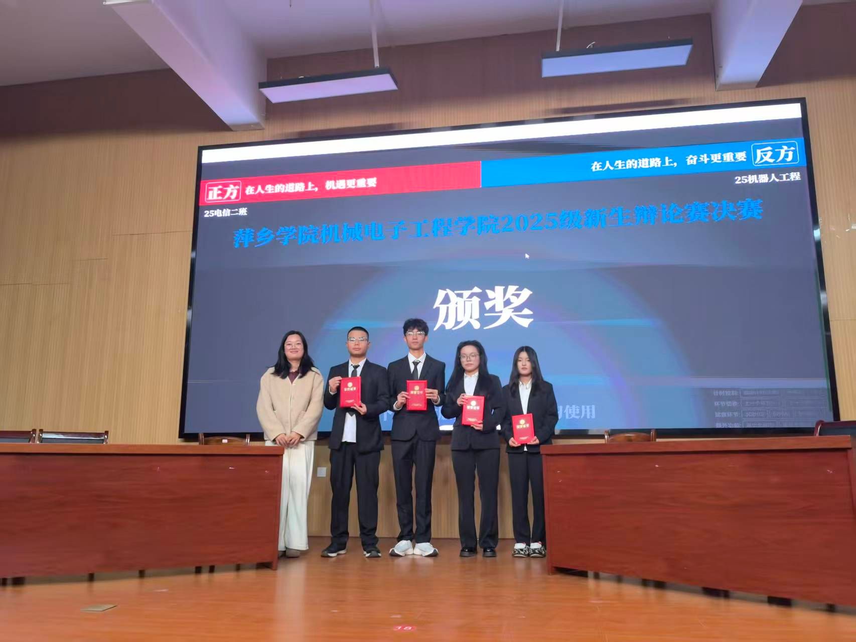 辩论结束后,评委团对双方表现给予高度评价,既肯定了辩手们在临场应变、团队协作与论据储备方面的出色表现,也从逻辑架构、语言表达、攻防技巧等方面提出了针对性改进建议。经过评委的综合打分后,最终反方正方25电信2班凭借出色的表达感染力斩获冠军,反方25机器人工程班获得亚军。此外,根据各环节个人综合表现评分,王梦、兰天祥获得“最佳辩手奖”。