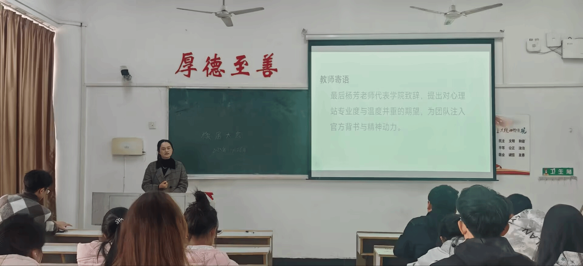 新起点孕育新希望,新任站长段兴汉与副站长谢璇依次上台发表就职演讲。他们分别表达了对心理站工作的热爱与担当,详细阐述了未来的工作规划与发展思路,展现出新一届领导团队的饱满热情与坚定决心,赢得了现场成员的阵阵掌声。
