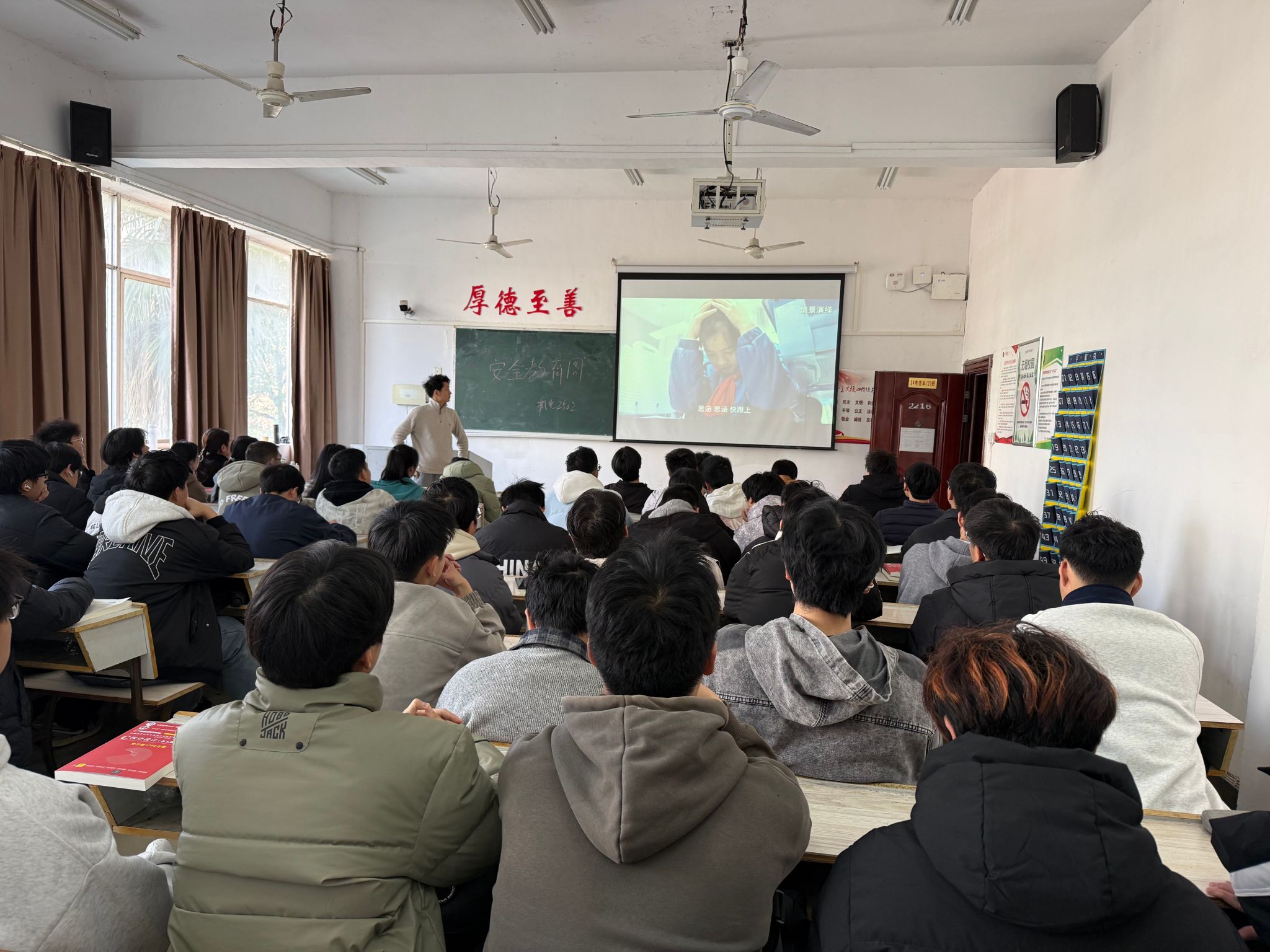 公司党委始终将安全工作摆在首位,成立专项工作领导小组,制定详实实施方案,组织集体备课会,深入研讨“江西智慧教育平台”课程内容及消防安全、网络安全、宿舍安全等知识要点,确保班会内容既全面又专业、既严肃又生动。各班级通过教室多媒体登录“江西智慧教育平台”集体观看心理健康、消防、交通、法治教育系列课程。班主任结合资料和真实案例,围绕宿舍违规电器危害、灭火器使用方法、火灾逃生技巧、“翻墙”行为的法律风险、电信诈骗防范、宿舍财物保管等内容进行深入讲解。班会互动讨论环节,员工围绕“身边的安全隐患”“如何防范网络诈骗”等话题踊跃发言,气氛热烈。在主题班会中,班主任特别融入机电专业特色,结合实验室安全、实训车间操作规范进行延伸讲解,引发员工强烈共鸣。部分班级邀请学校保卫处工作人员现场演示灭火器使用方法,指导员工亲自操作,让员工在实践中掌握“提、拔、握、压”四步法。